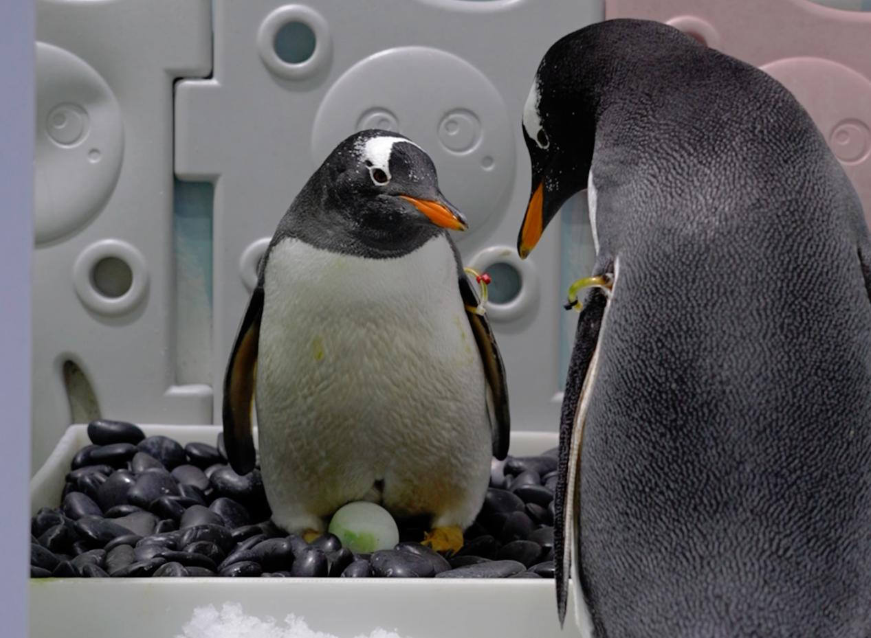 在极地世界展区,孩子们围绕《偷石头的南极企鹅》科普展,观察企鹅爸爸孵蛋的温馨场景,了解广州唯一南极企鹅家族的繁育故事。