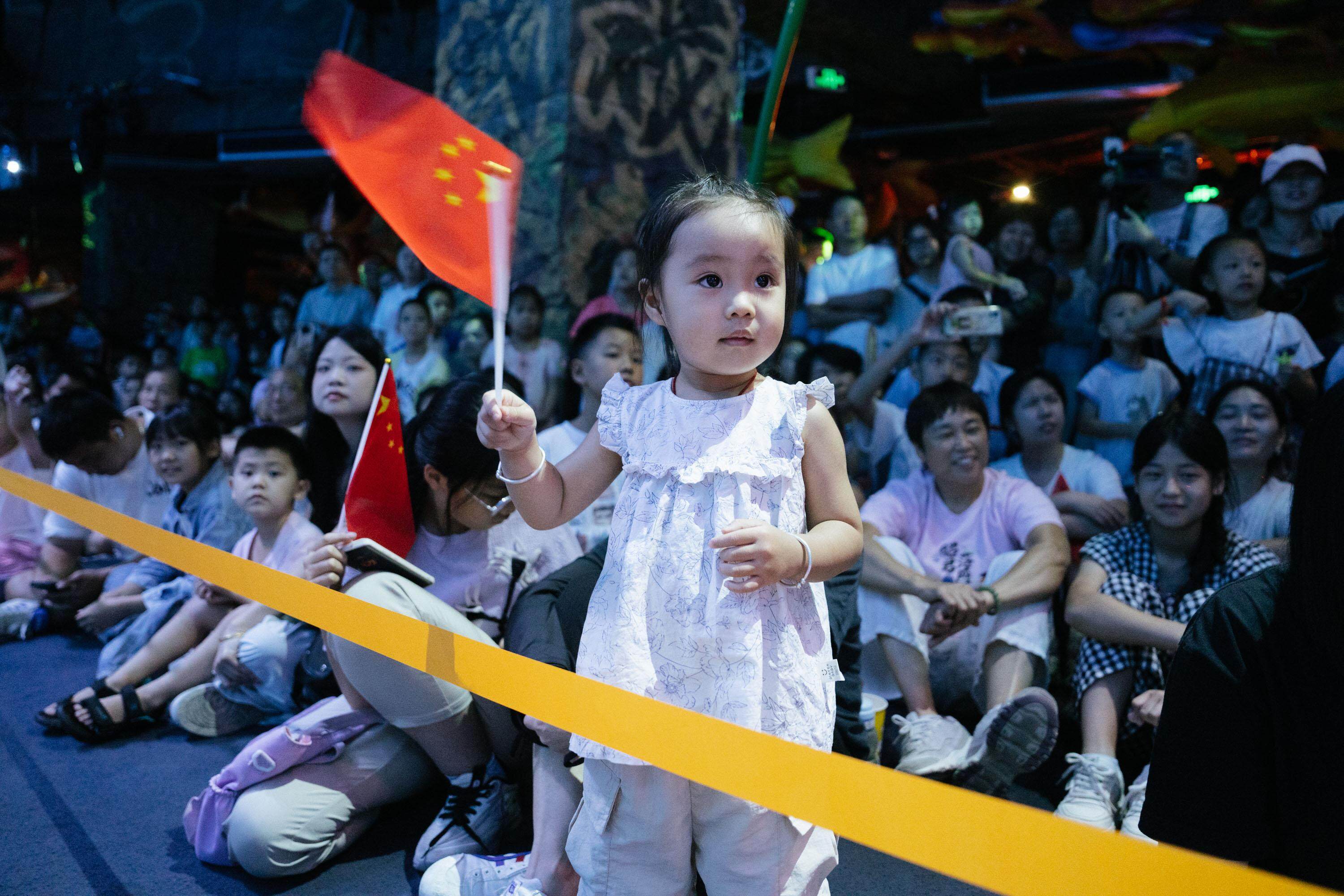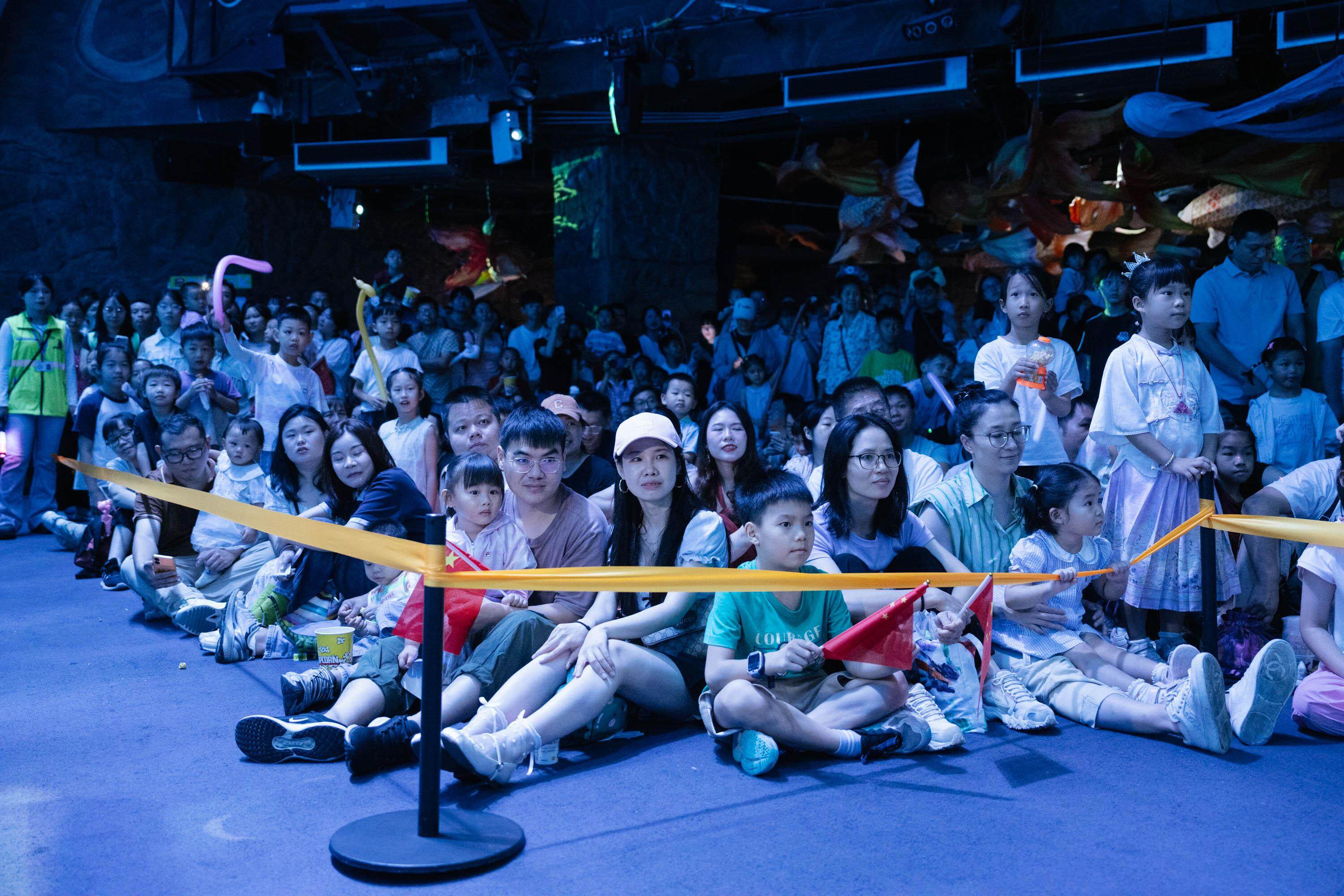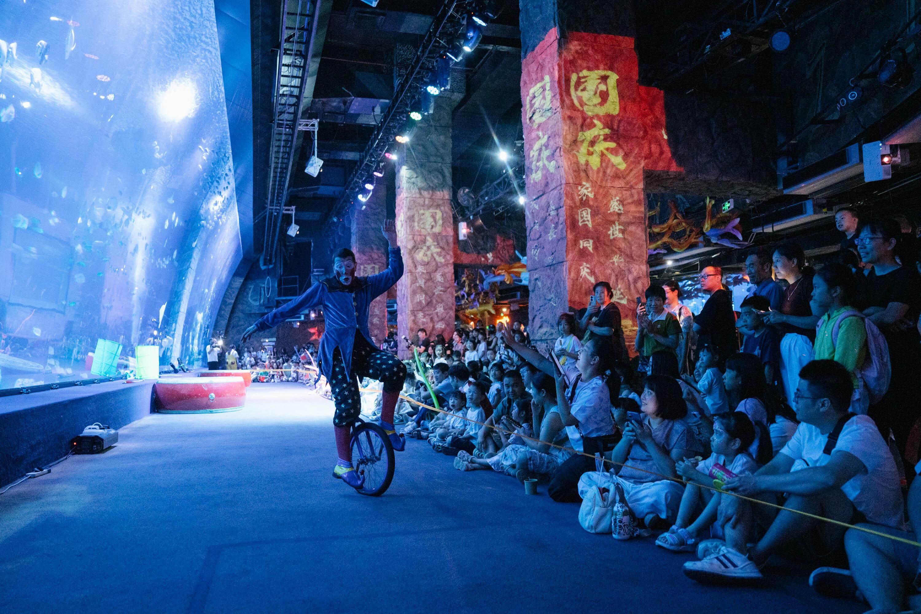 为献礼国庆,正佳极地海洋世界特别策划国庆限定活动《海底红星贺华诞》水下升旗仪式。三名潜水员手持巨幅五星红旗,在深蓝海水中缓缓展开,并于旗前组合成醒目的黄色五角星。这一幕庄严而动人,不少游客挥动手中的小国旗,现场汇成一片炽热的“红色海洋”。